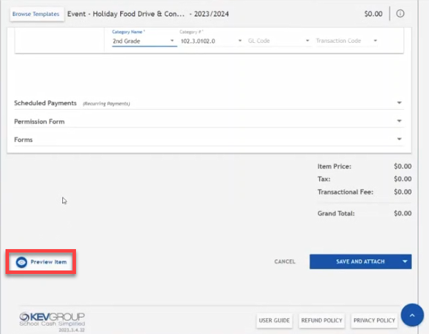 - Save and Attach the Food Drive item as an optional item attached to all students.